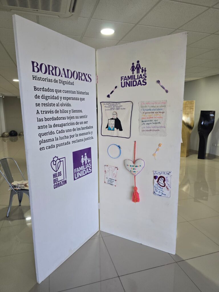 Cada puntada representa un acto de amor y de búsqueda. Los hilos se convierten en un lenguaje que narra lo que muchas veces las palabras no alcanzan a decir: la esperanza, la exigencia de verdad y justicia, y la fuerza de quienes siguen caminando para encontrar a sus seres queridos.